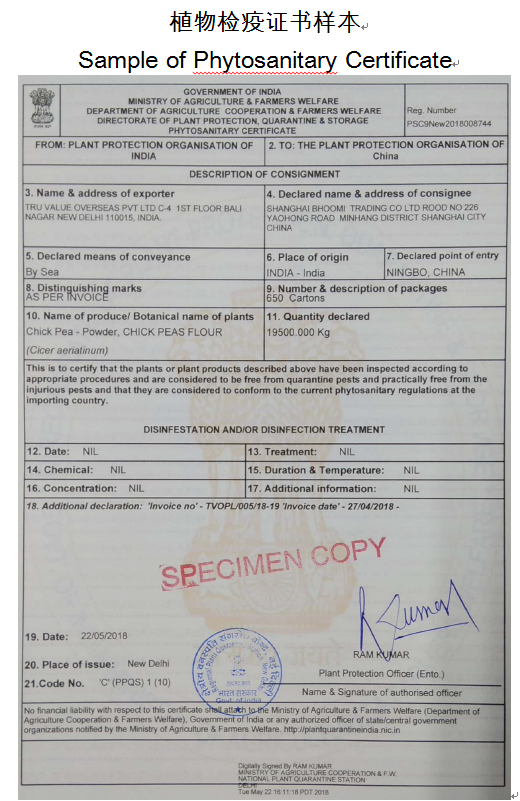 2.經植物檢疫合格的,印方應出具官方植物檢疫證書(樣本見附1)。